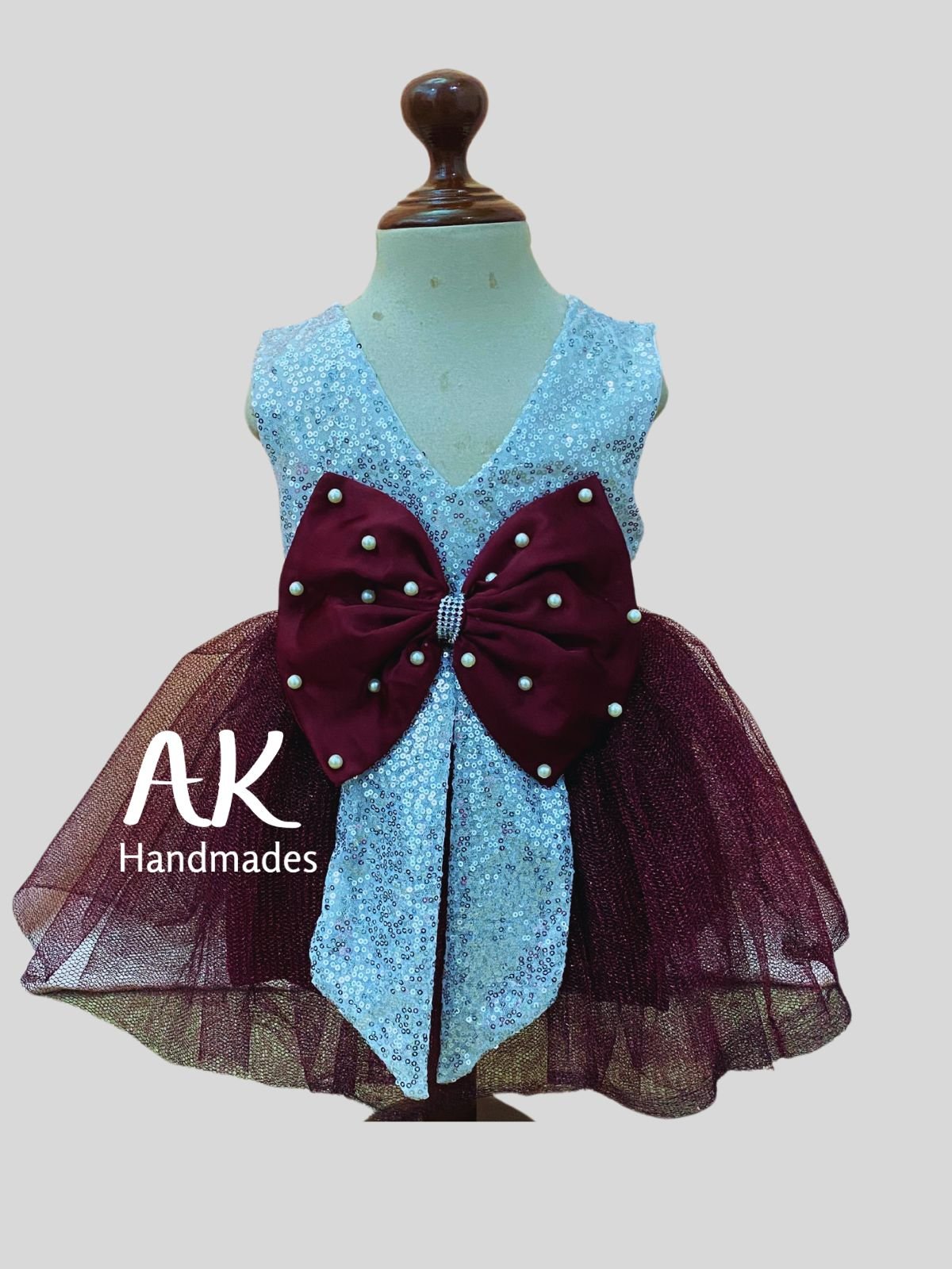 Key Features Pearl Bow Tutu Maroon and Silver Dress: