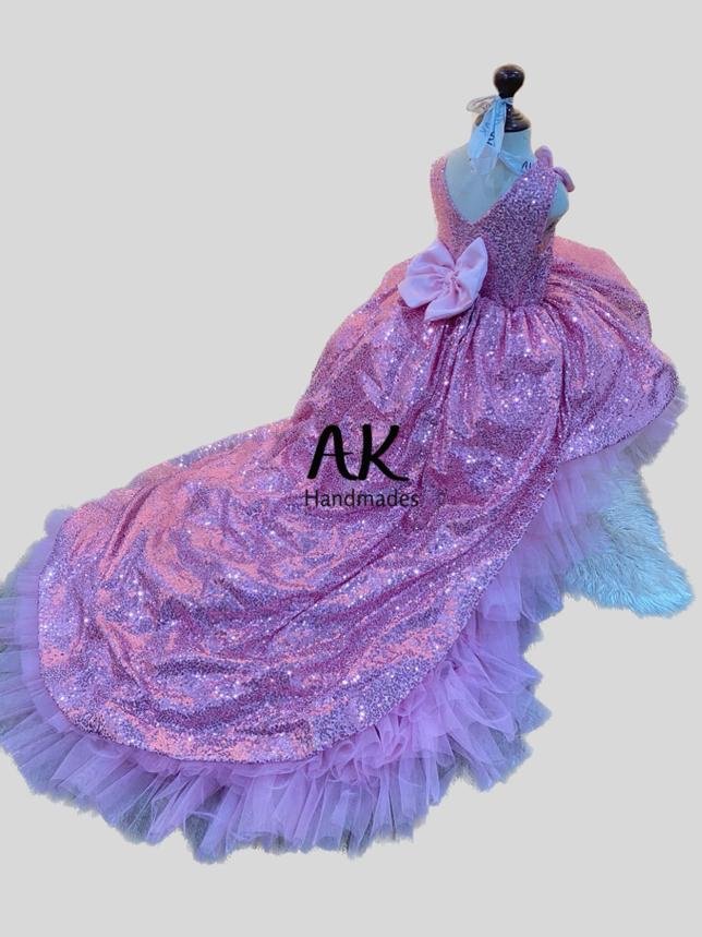 Very beautiful and comfortable Sequins Tail Gown available in different color. Perfect for wedding or birthday party for little girls to feel like a princess royal look tail gown. Comfortable and stylish dress so your little girl feels like a real princess as per wedding or birthday theme dress color can be customized. Silk bow on sequin tail gown with soft inner and loaded with cancan to make this fluffy and stylish.